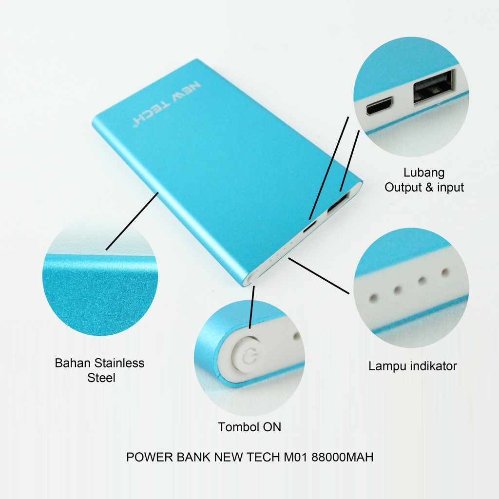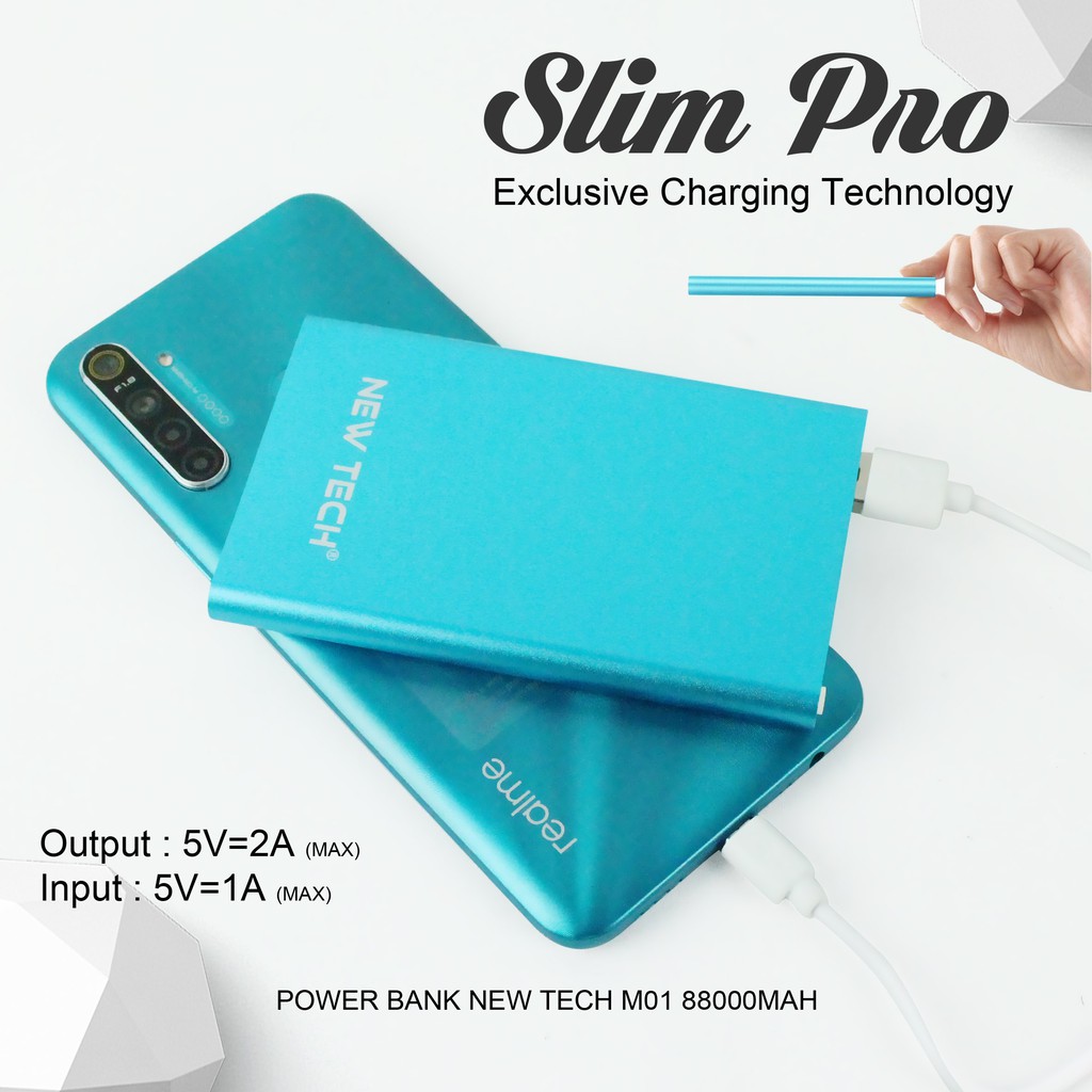 Beli POWER BANK SUPER SLIM 88000MAH + KABEL M01 NEW TECH PENGISI DAYA Sekarang Juga